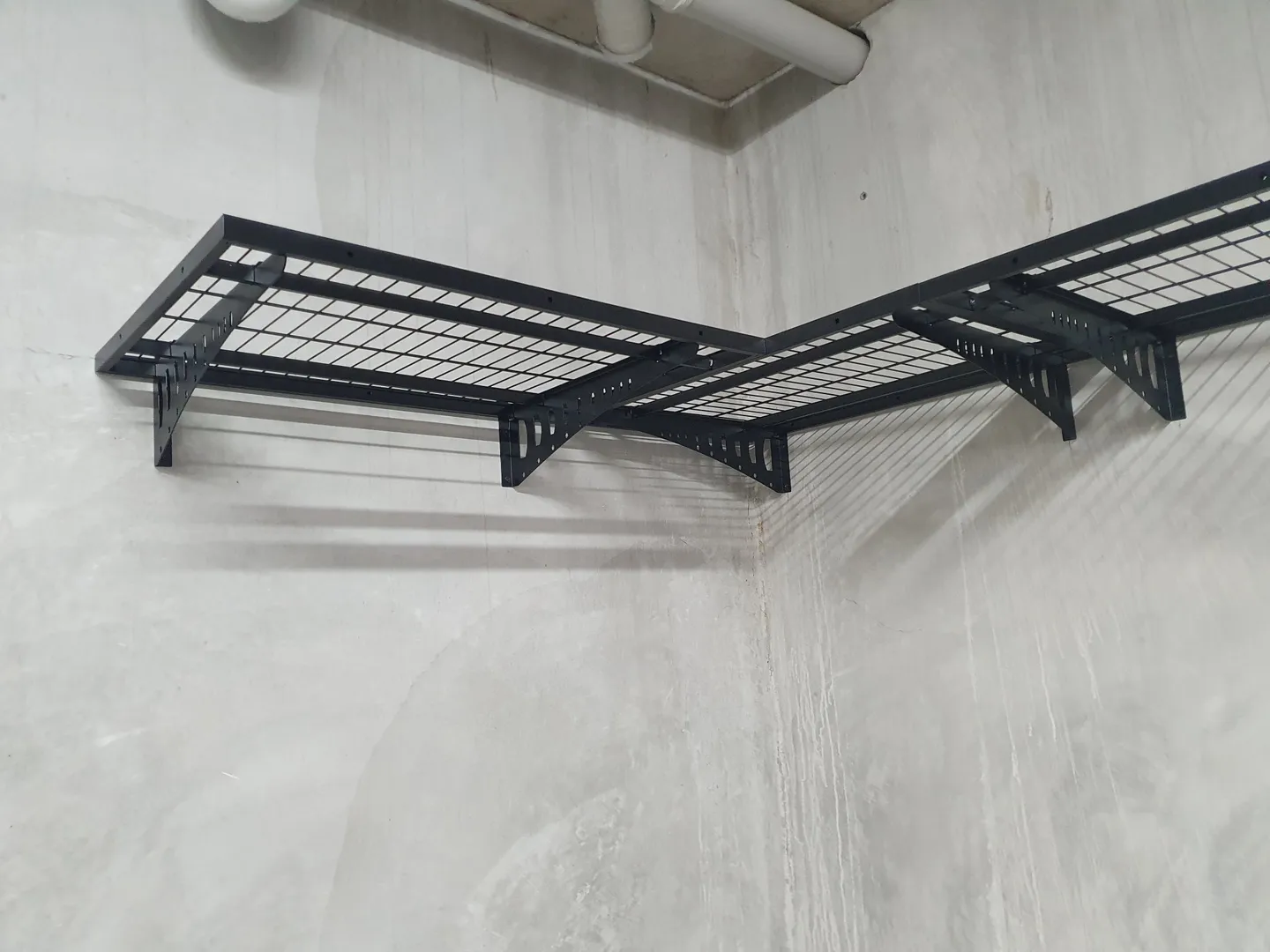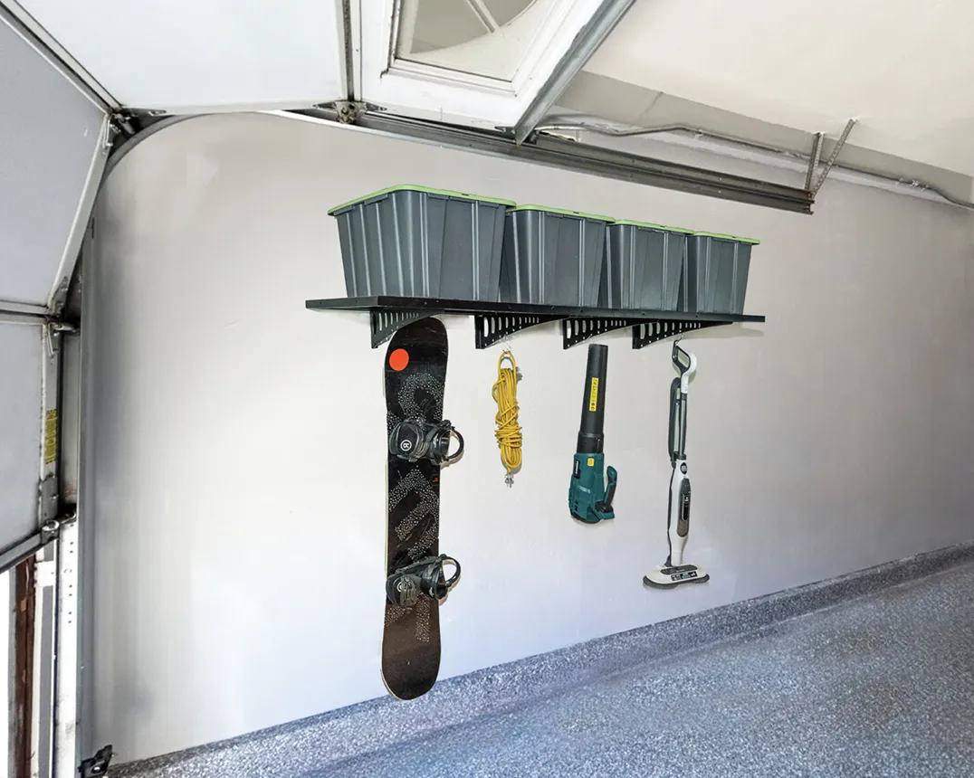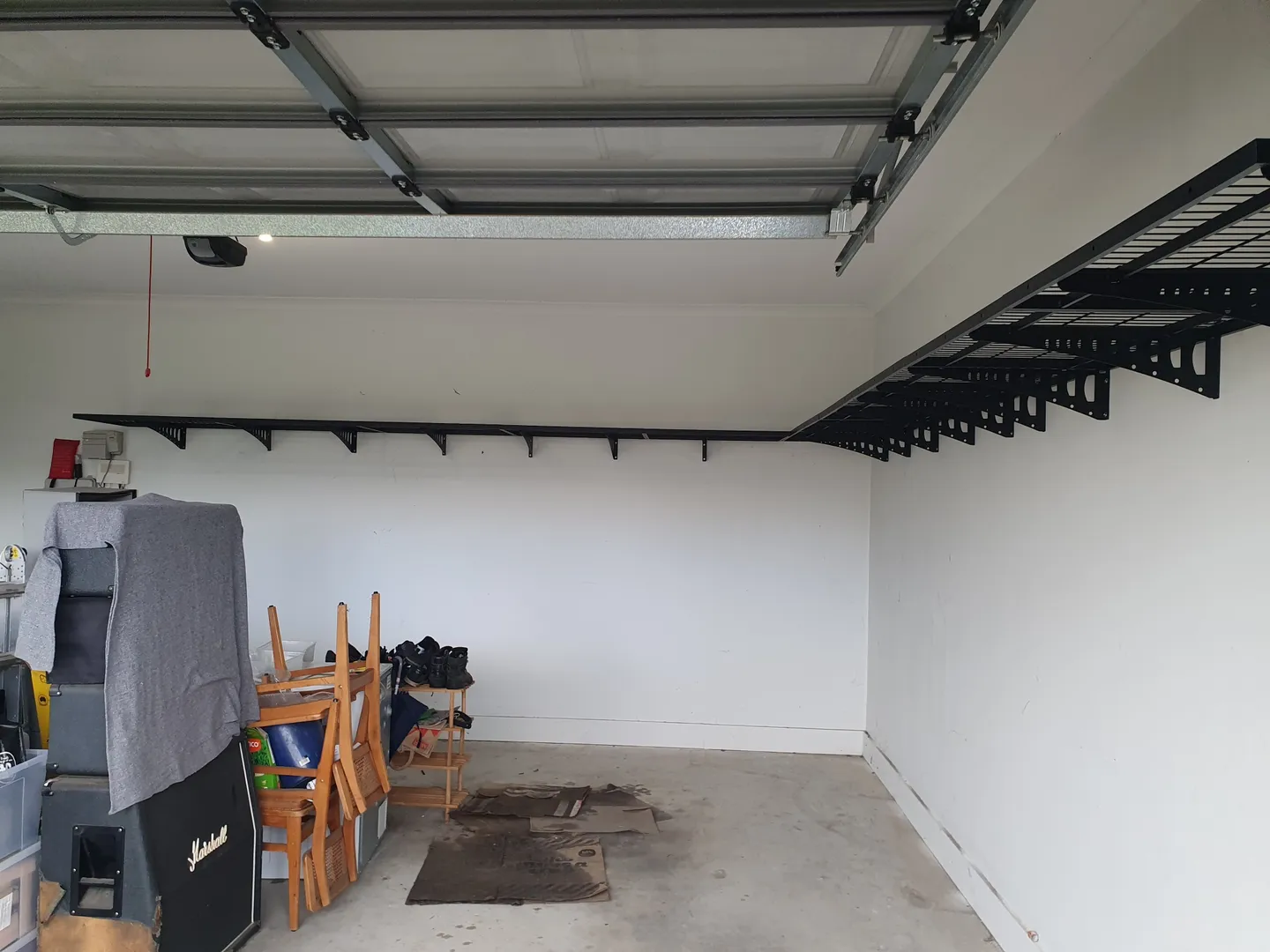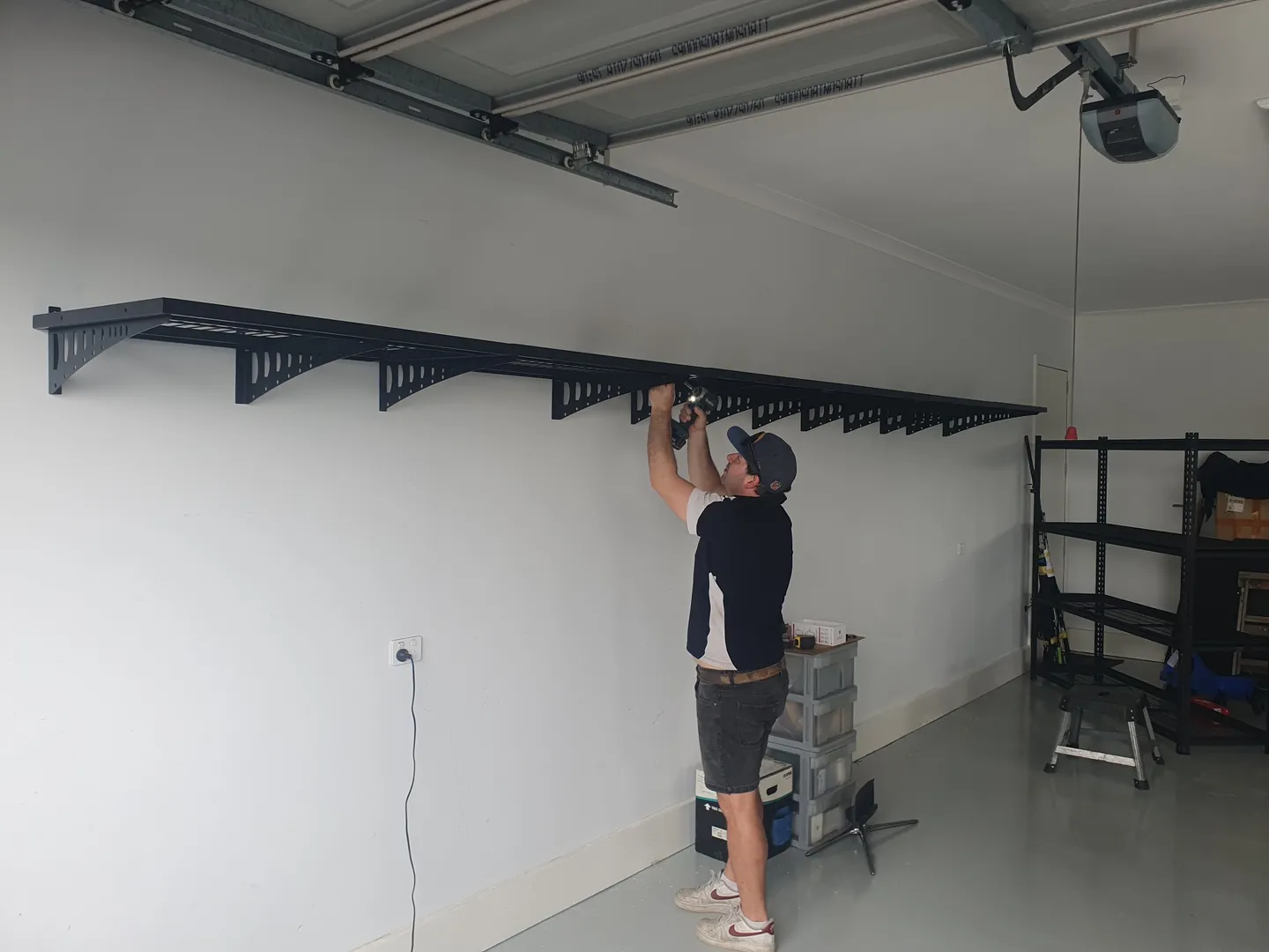 This shelf is a solid choice for anyone looking to maximise garage storage. The heavy-duty steel construction feels robust and easily supports bulky. It offers generous space without taking up floor area.